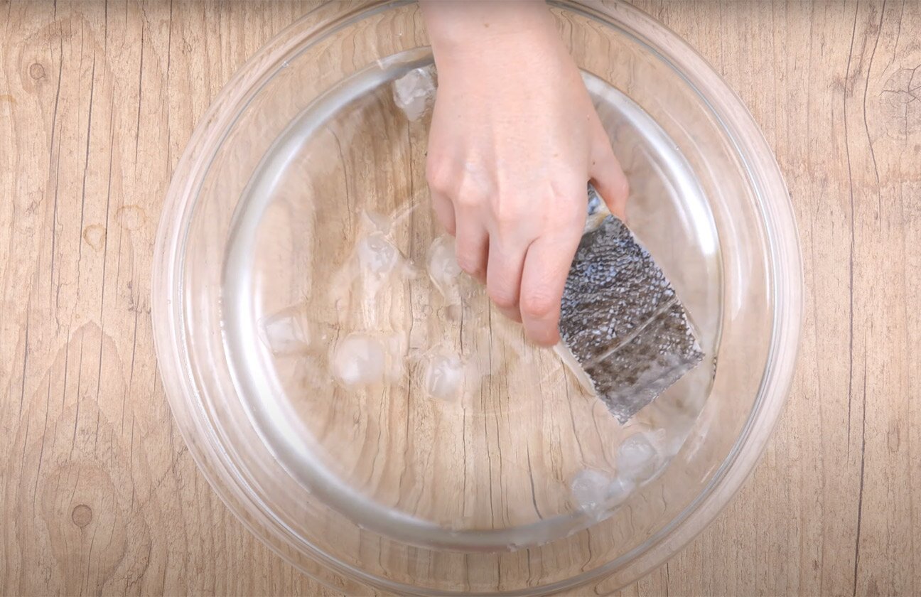 - Na hora de trocar a água, não troque a água do Bacalhau e sim o Bacalhau de água. Coloque pedras de gelo na outra vasilha que está apenas com água gelada e troque o Bacalhau de vasilha.